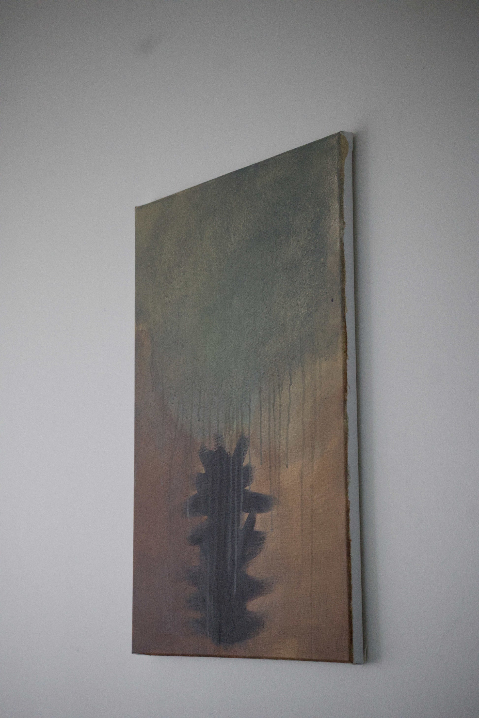 - 16" x 20" (40.64cm x 50.8cm) stretched and back stapled to a 1.1875" x 0.625" (3.01cm x 1.587cm) wooden frame