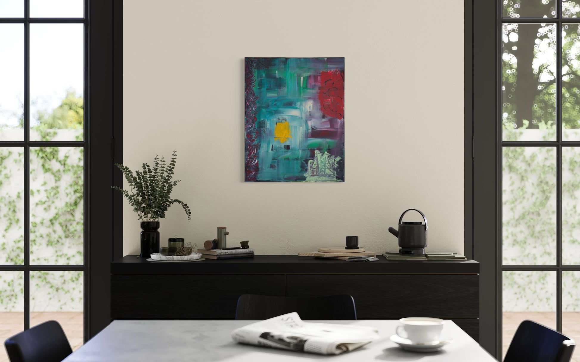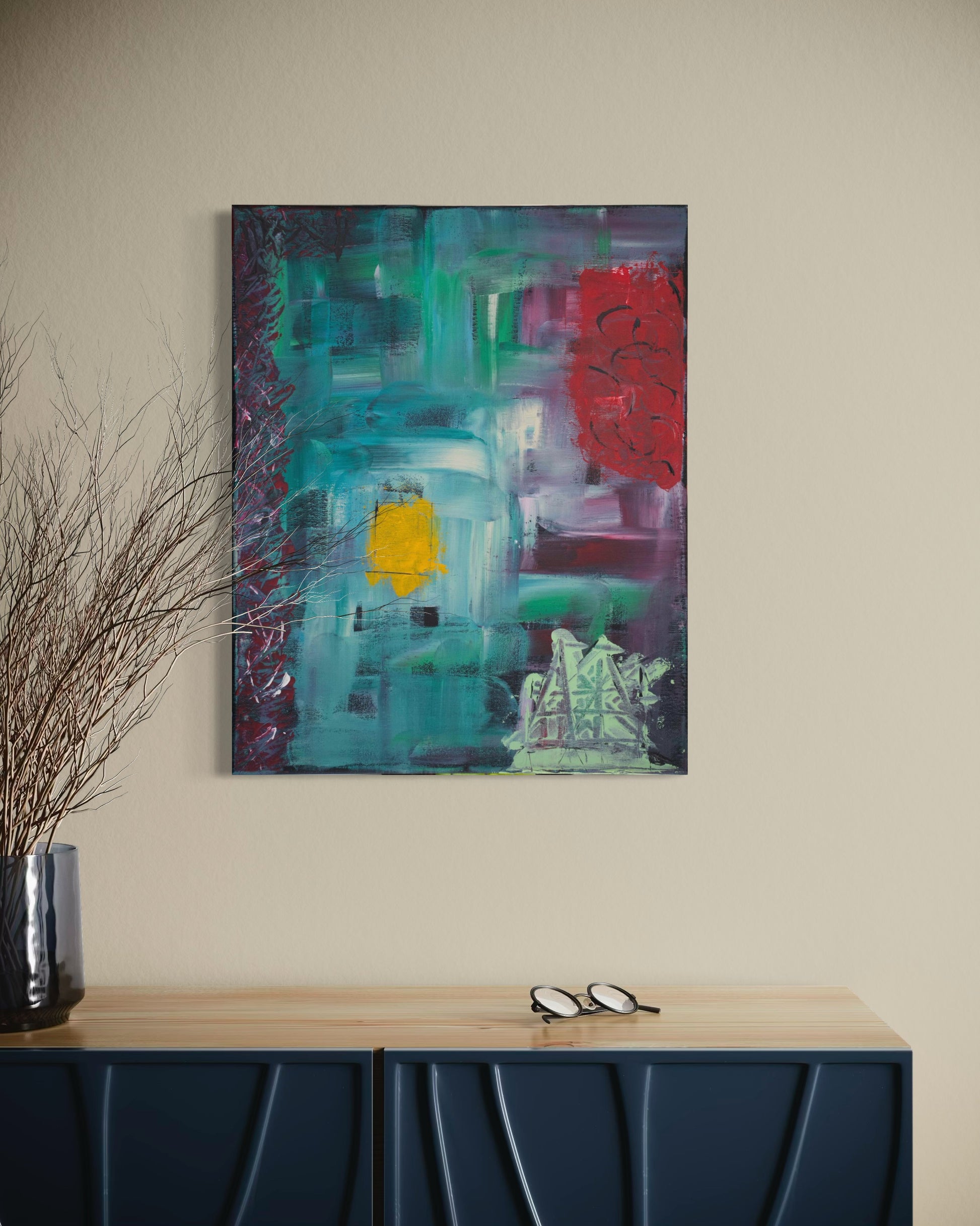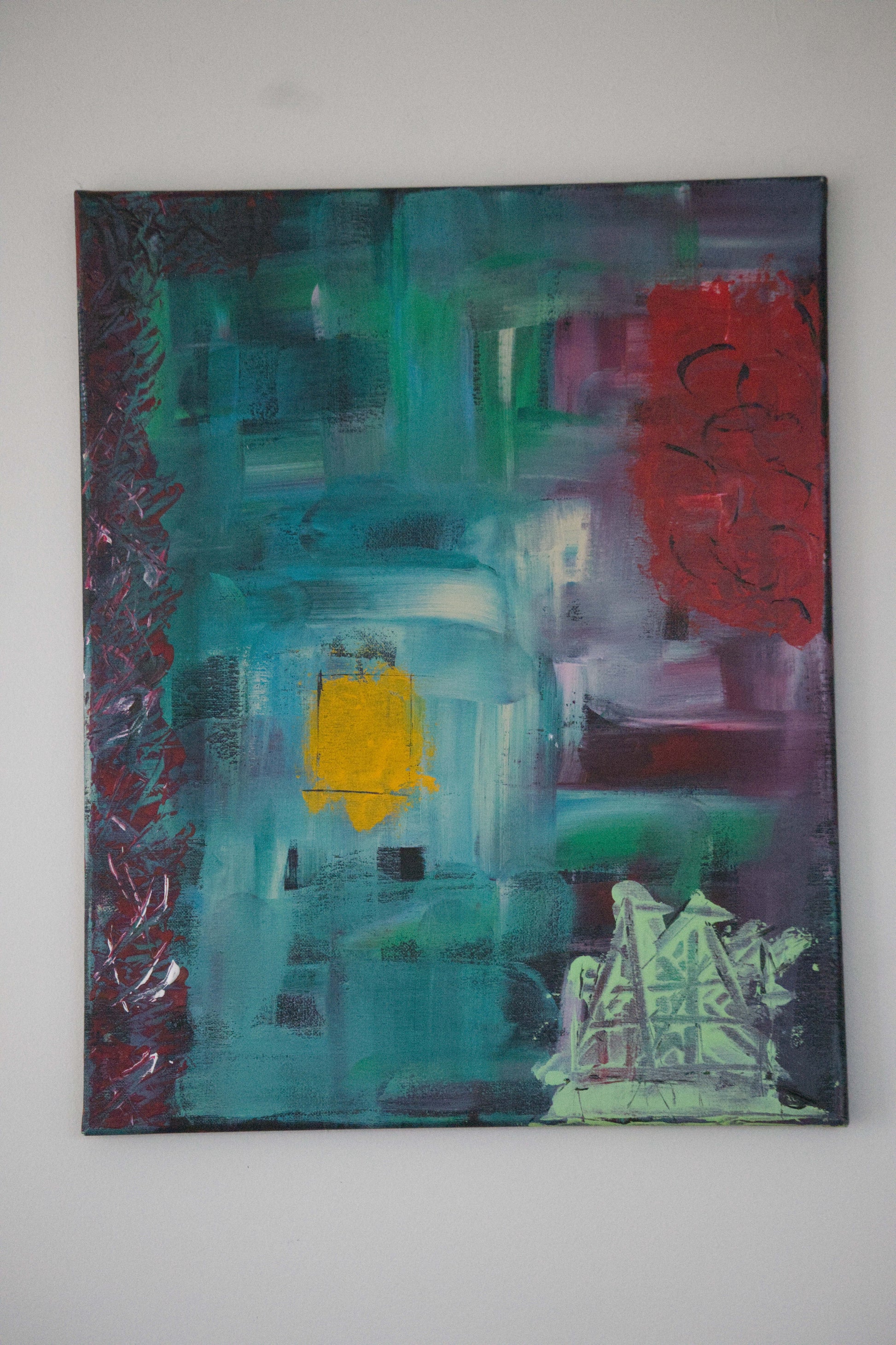 - 16" x 20" (40.64cm x 50.8cm) stretched and back stapled to a 1.1875" x 0.625" (3.01cm x 1.587cm) wooden frame